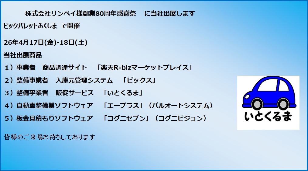 - 株式会社リンペイ様創業80周年感謝祭 出展のお知らせ
